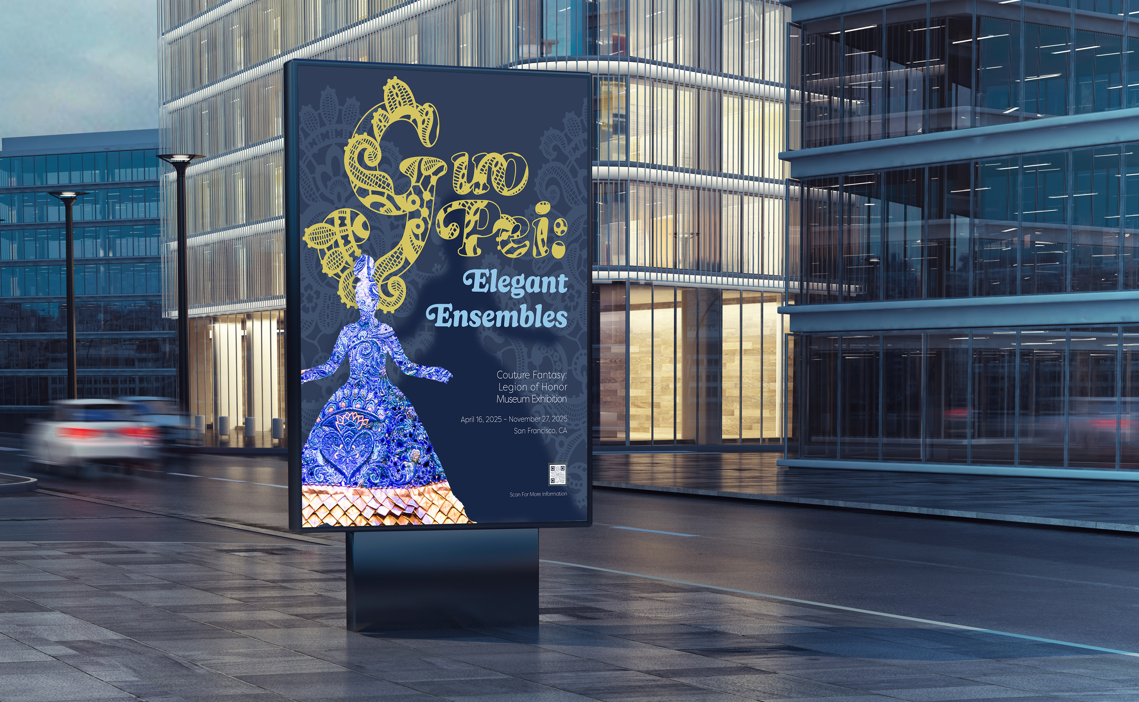 This project consists of a series of three posters designed to advertise fashion designer Guo Pei’s exhibition “Couture Fantasy” at the Legion of Honor Museum.