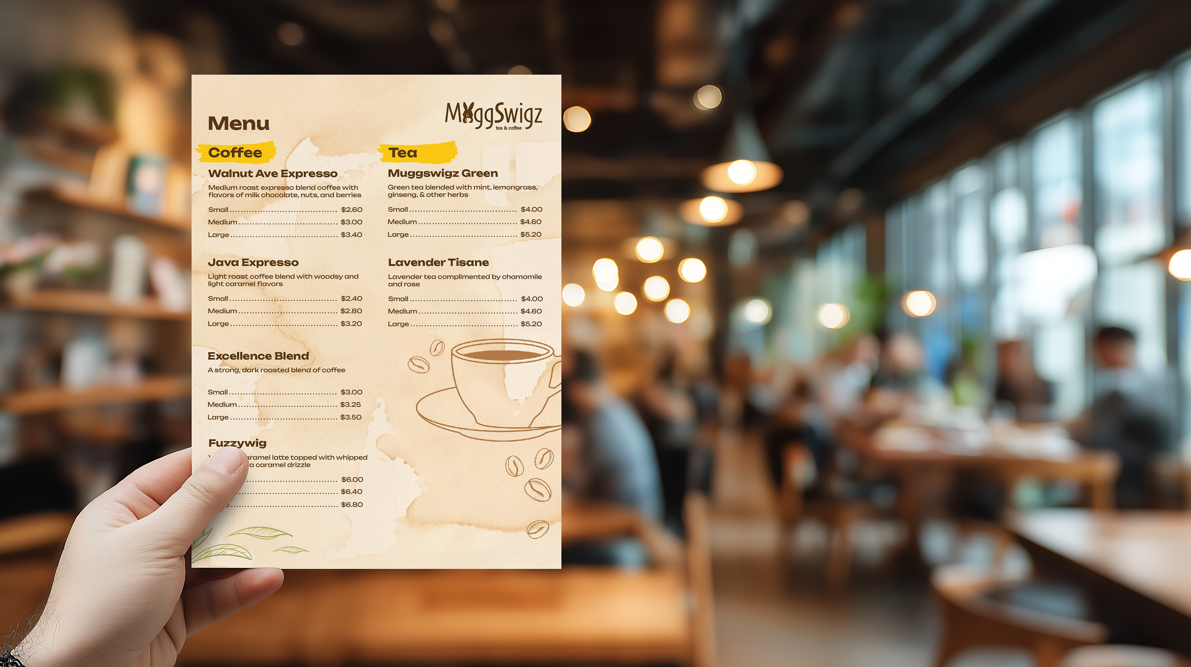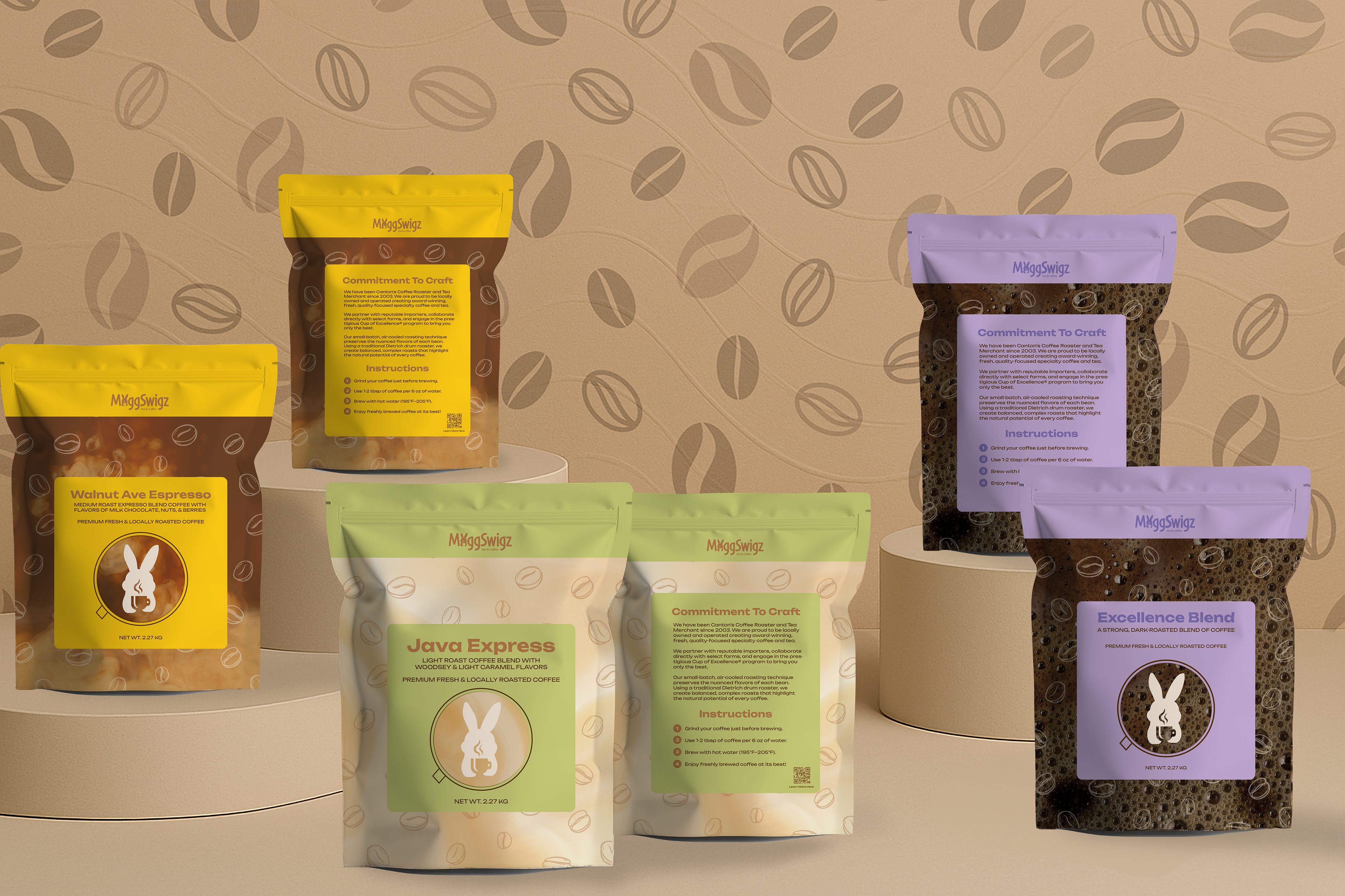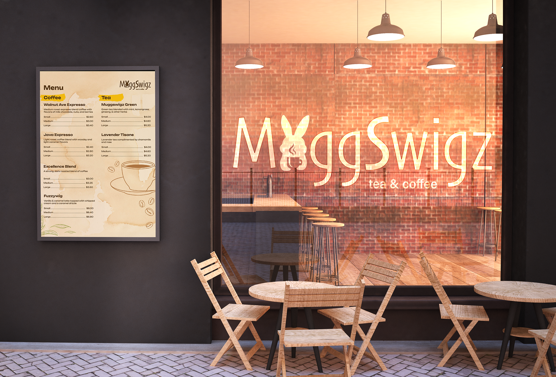 A collaborative project to create graphic elements Muggswigz, a small tea & coffee shop located in Canton, Ohio. My role was to design packaging, signage, & a menu for Muggswigz’s coffee grinds and loose tea.