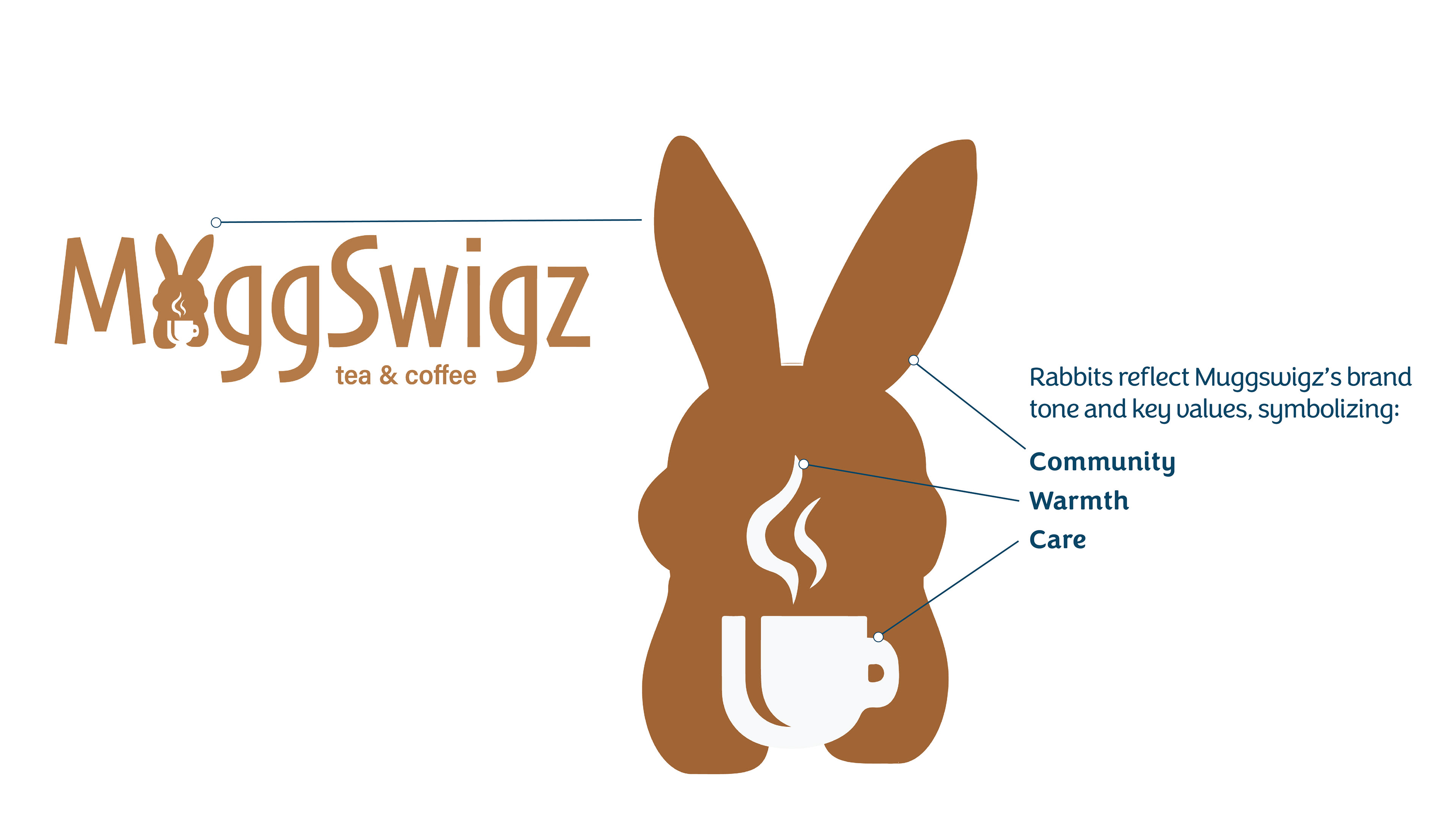 Rabbit identity mark placed in coffee cup to resemble latte art, adding playfulness