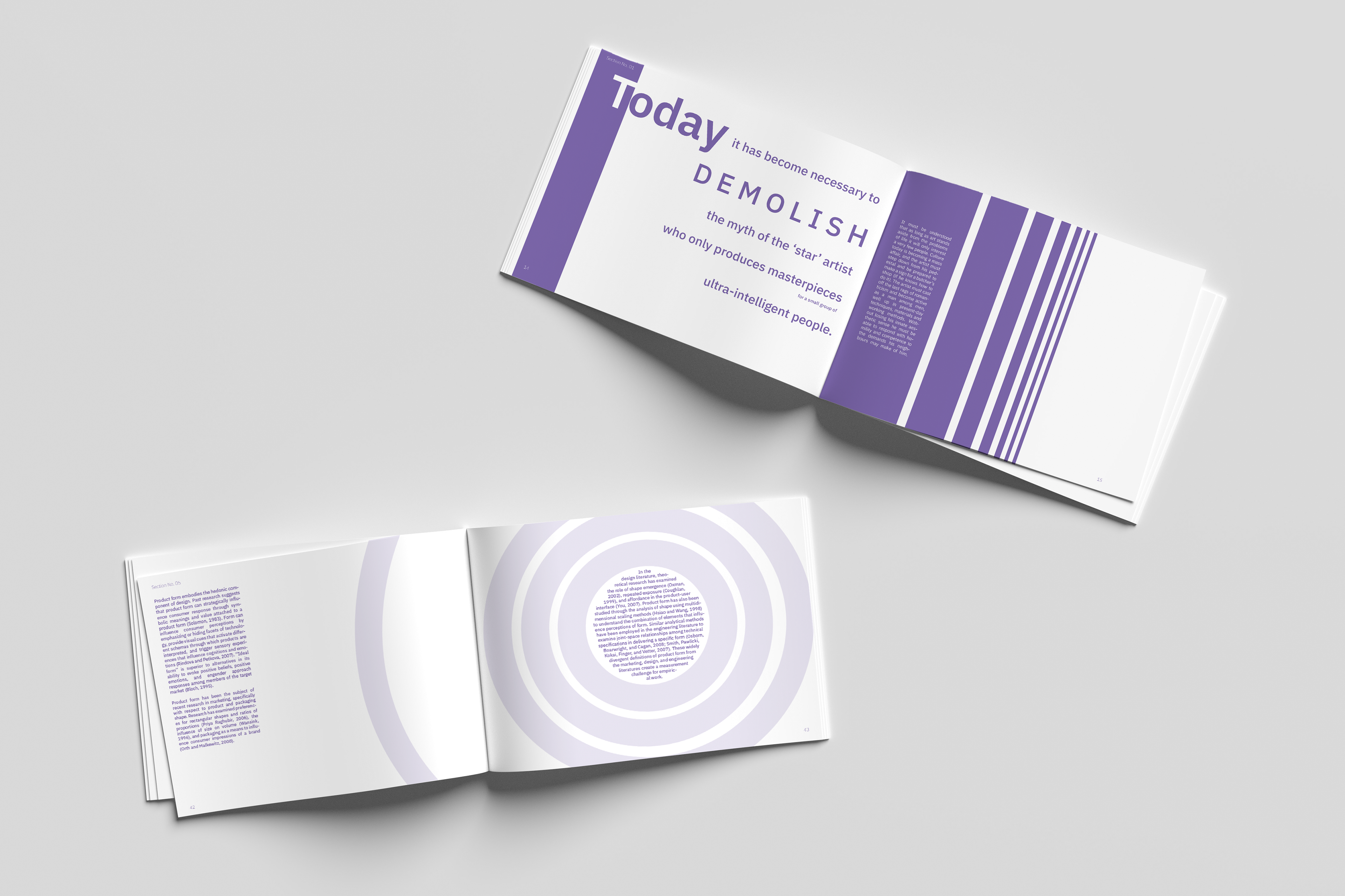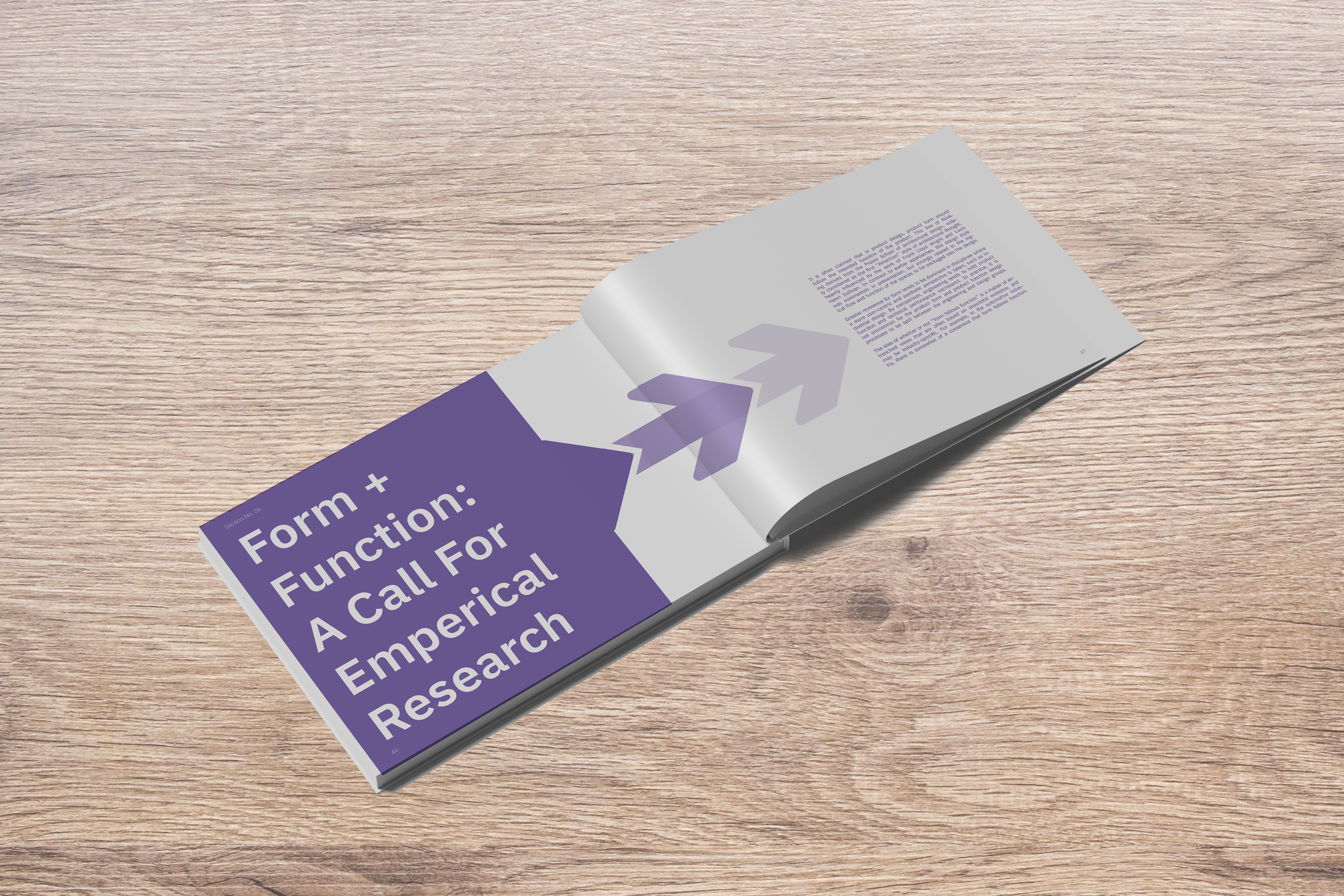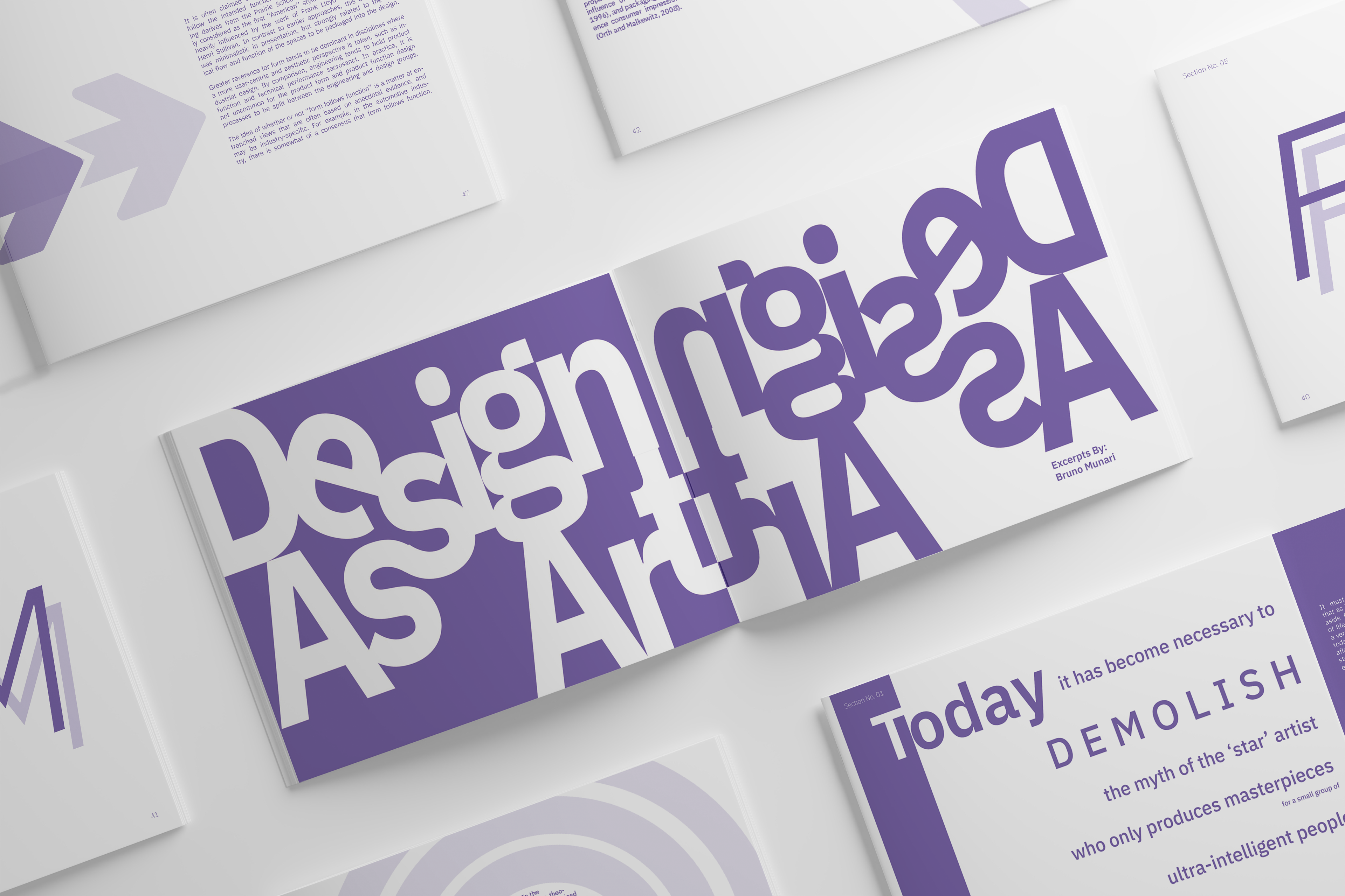 Project to create a typography-focused book including texts Design As Art by Bruno Munari and Form and Function: A Matter of Perspective by Janell D. Townsend, Mitzi M. Montoya, and Roger J. Calantone. All text used is copyrighted by the authors.